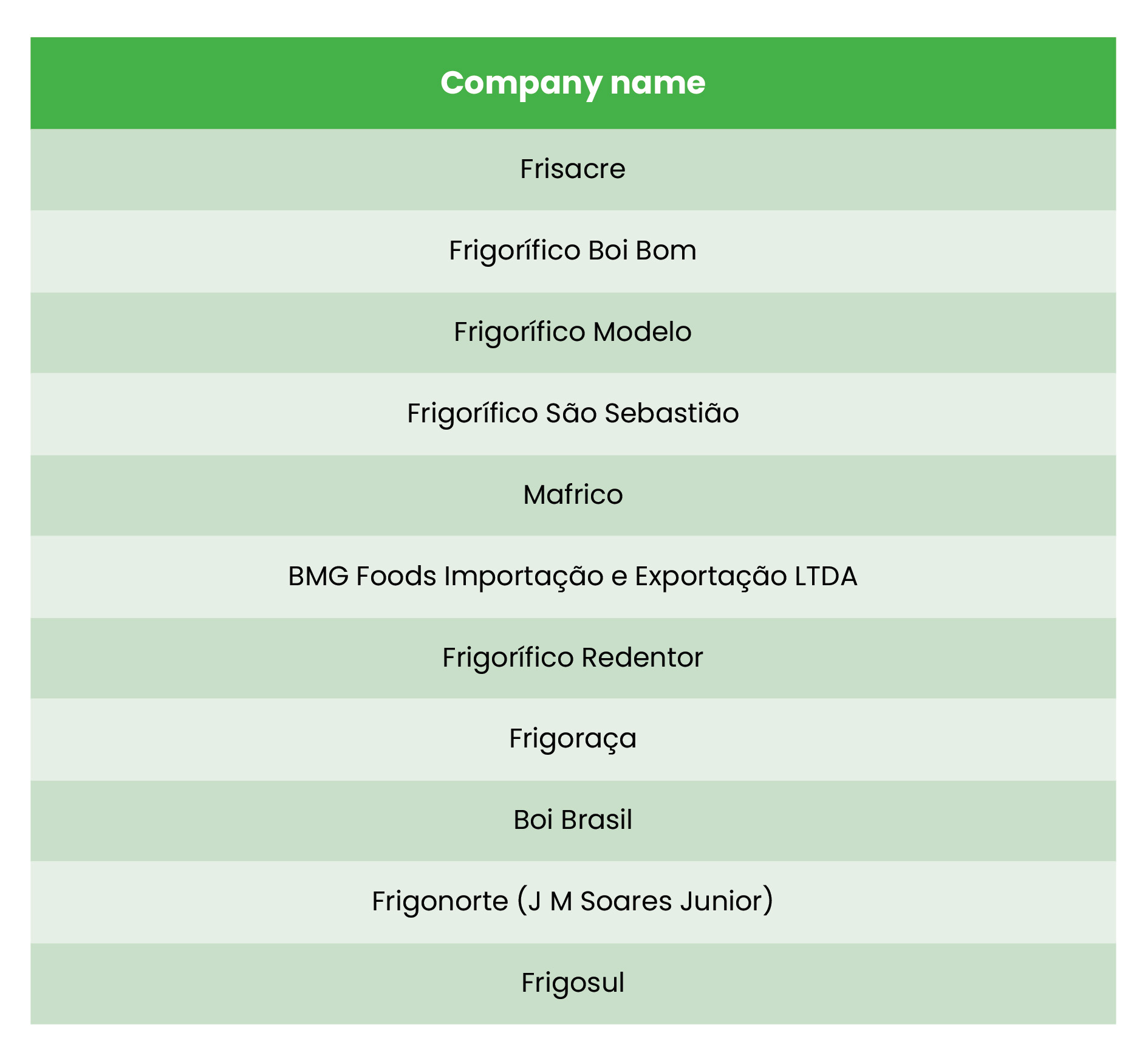 Some companies have disclosed the names and locations of their supplier farms in compliance with the requirements of the Meat TAC (Table 13).