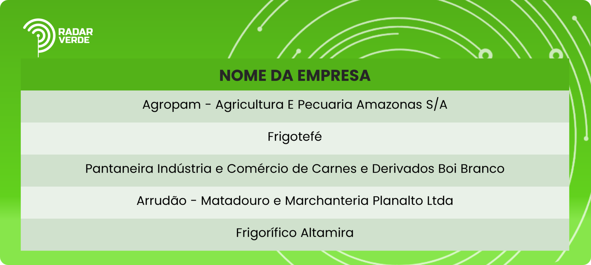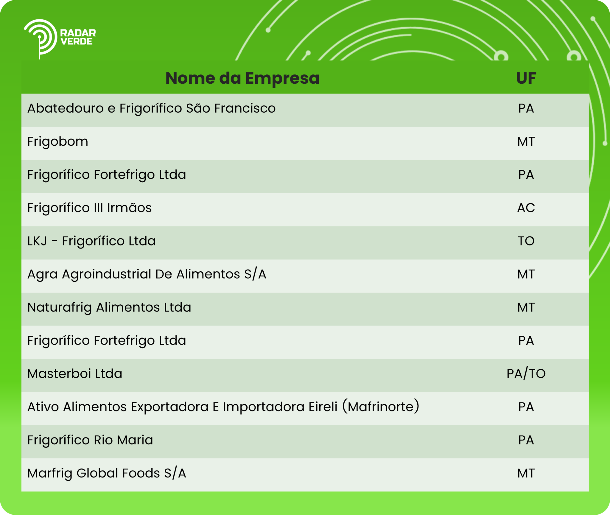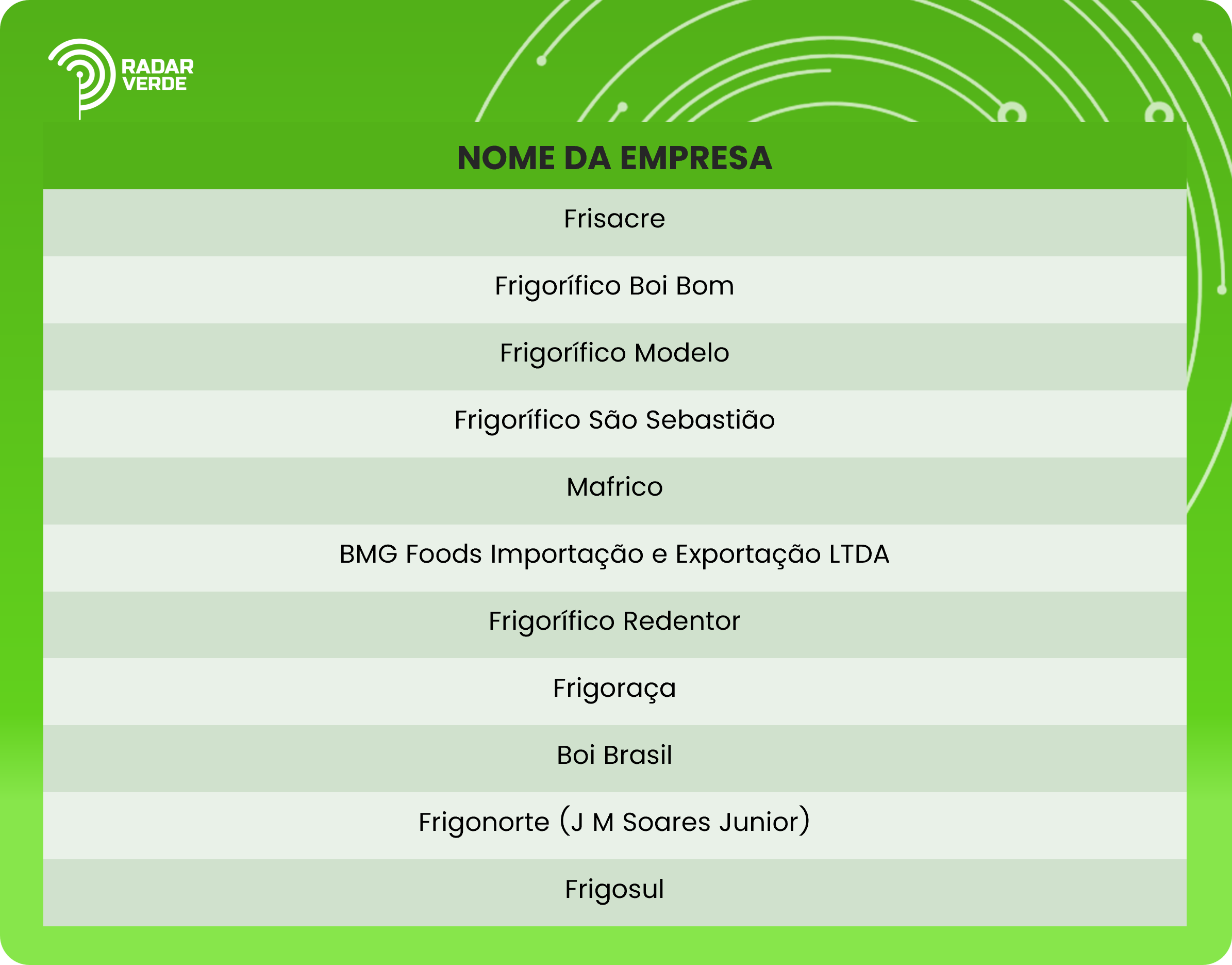 Empresas frigoríficas que divulgaram a lista de fazendas fornecedoras