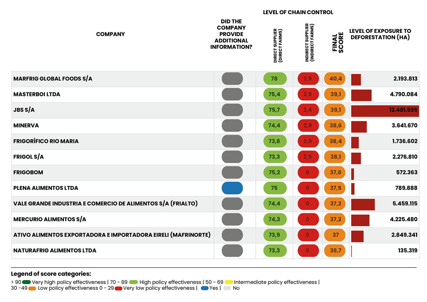 Twelve companies, together representing 41% of total slaughter capacity in 2024, demonstrated the highest levels of commitment and control over their suppliers, based on publicly available data. The companies Marfrig, Masterboi, and JBS lead this ranking.